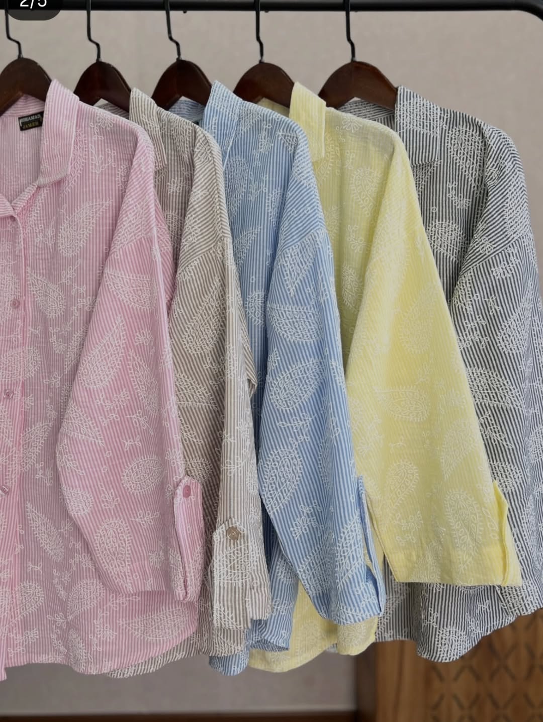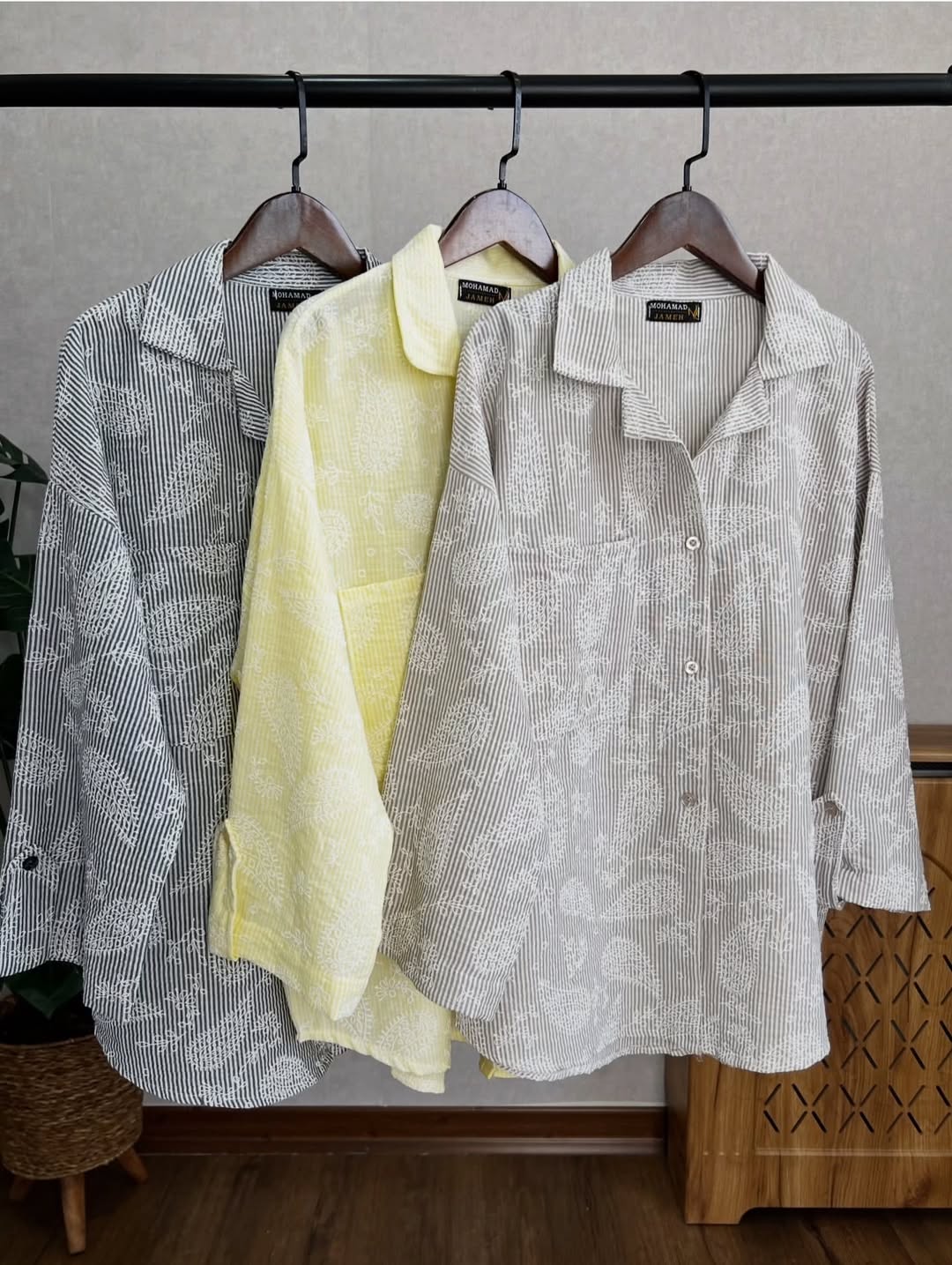 شومیز مانتویی لینن پیگمنت گل برجسته طرح ترمه