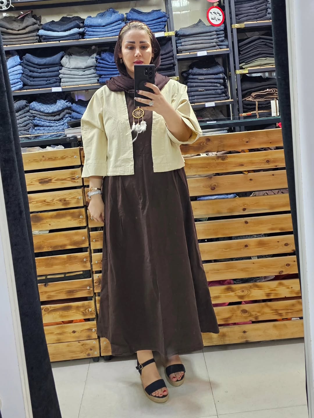 سارافون و رویی رنگبندی شامل قهوه ای، سورمه ای، مشکی، سفید، سبز، آبی روشن، کرم و سبز یشمی. مناسب تا سایز ۴۸.