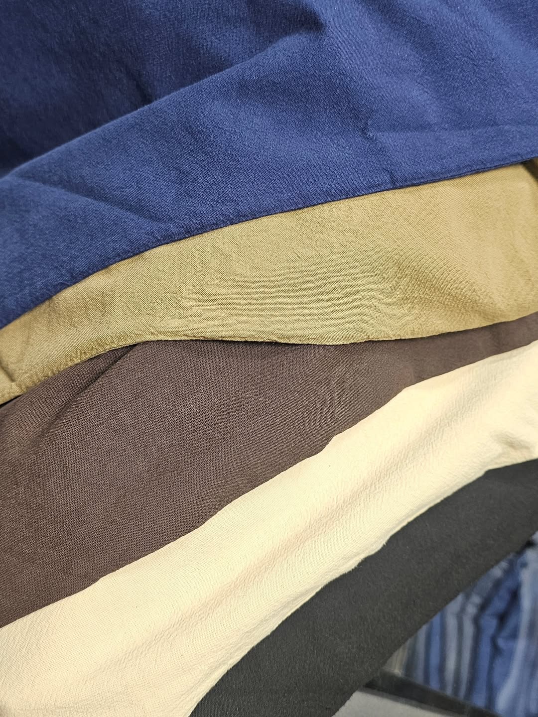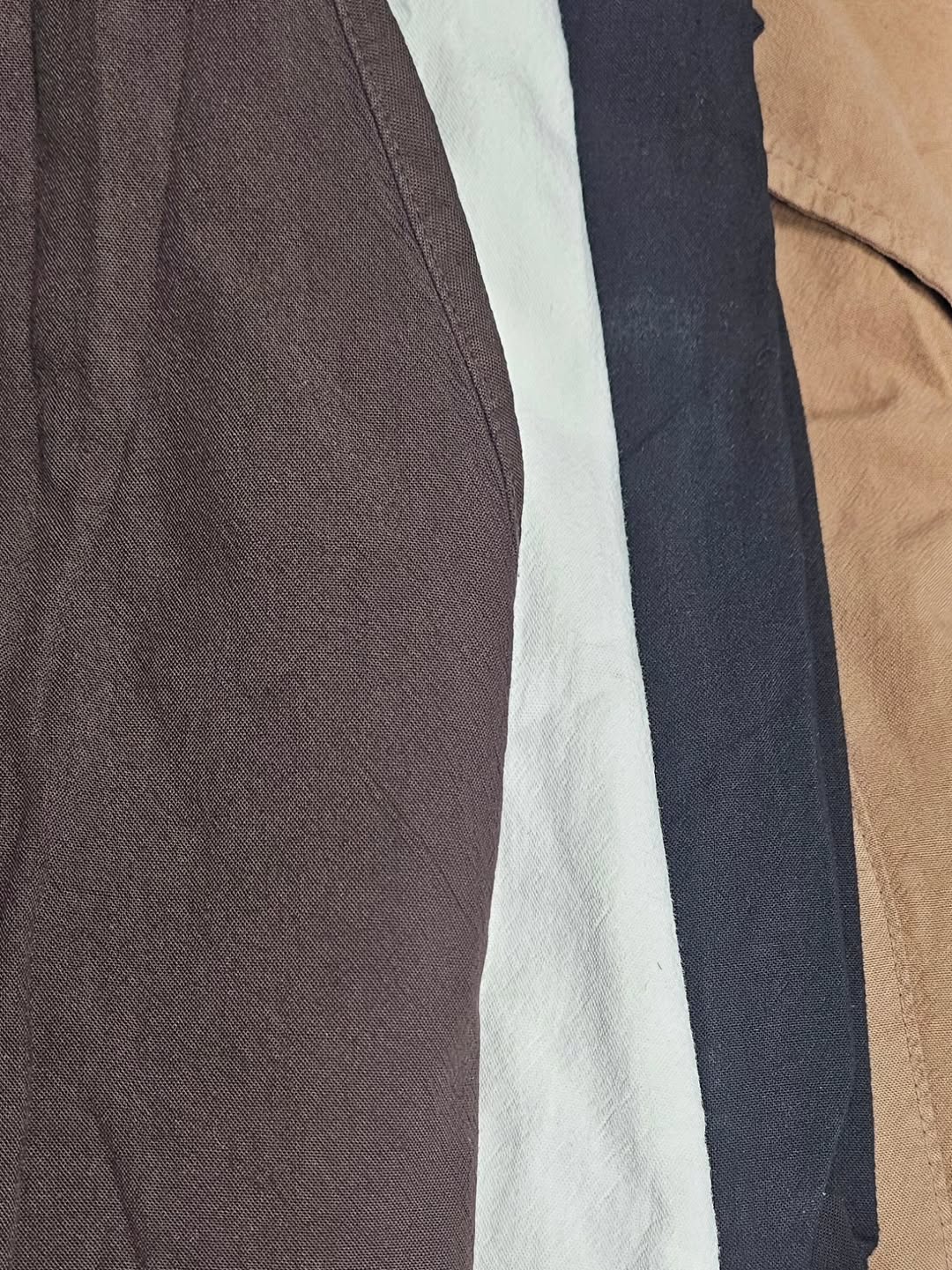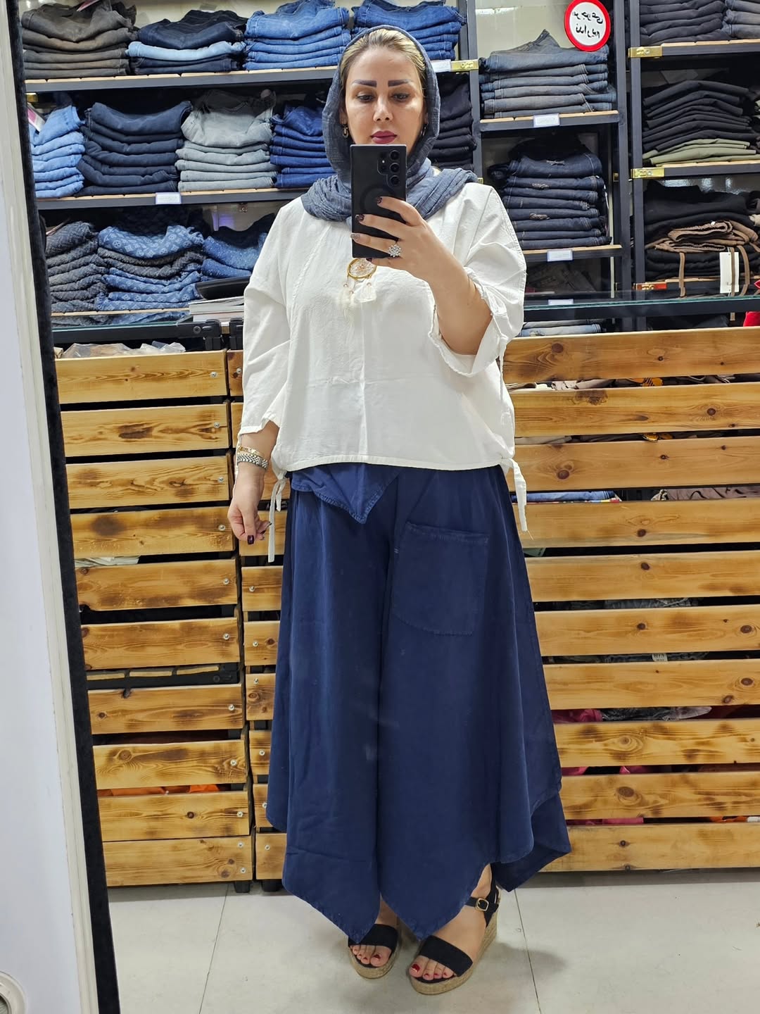 شومیز و دامن شلواری با رنگبندی شومیز شامل سورمه ای، سفید، نسکافه ای، کرم، قهوه ای و مشکی. رنگبندی دامن شامل قهوه ای، سورمه ای، موکا، سفید و مشکی.