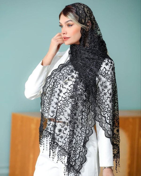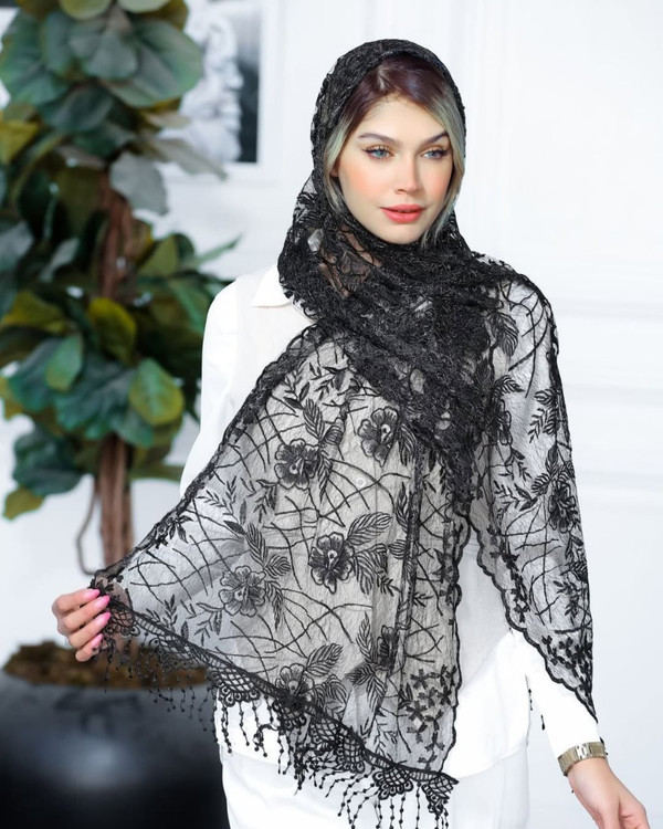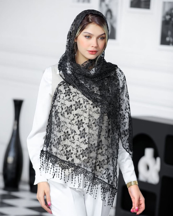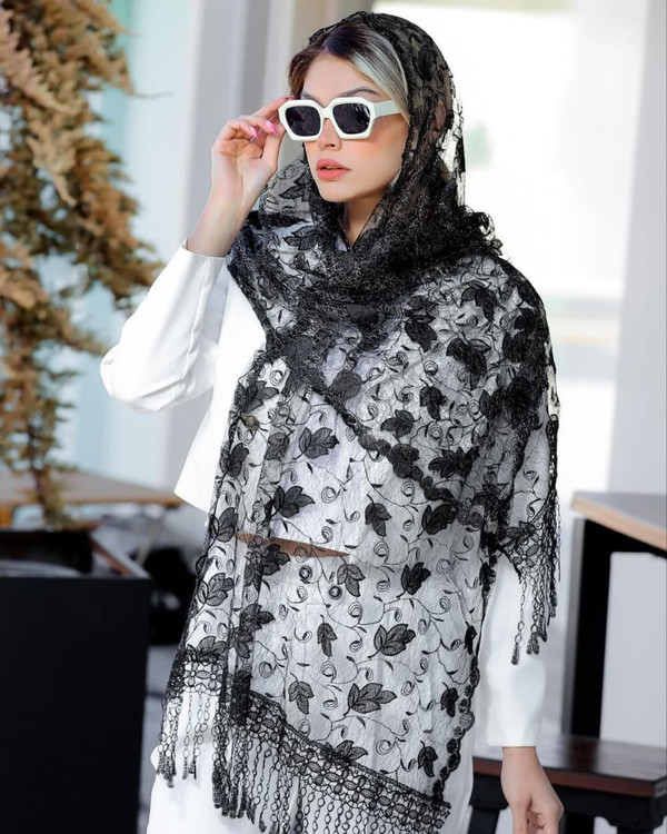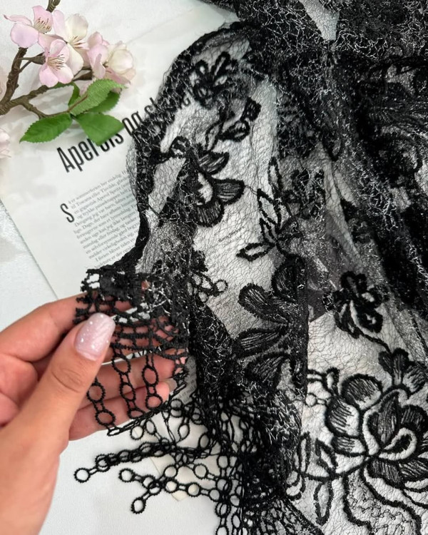 یه کار خاص و خفن مناسب خاص پسندان شال گیپور نخ مشکی و لمه نقره ای طرحبندی محصول وارداتی مزونی