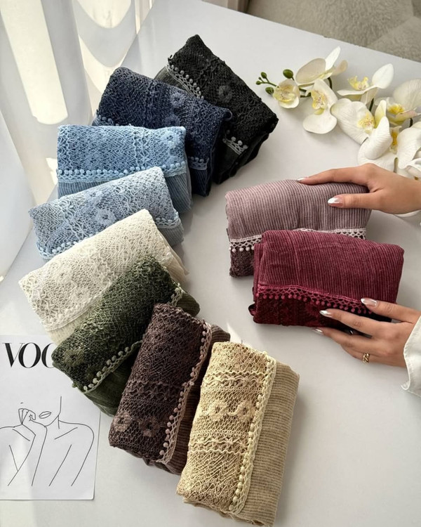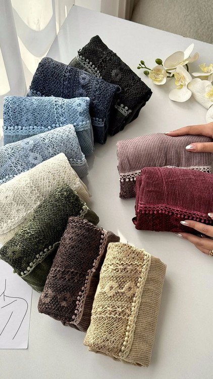 شال کنفی نخی پایین دانتل رنگیندی نحصول وارداتی چینی برای اطلاع از لطفا