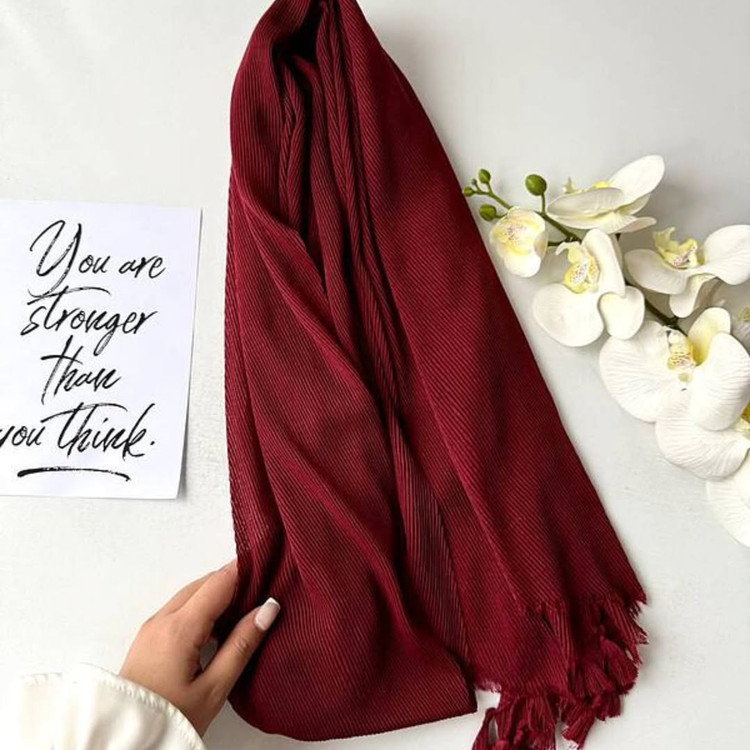 شال پلیسه بامبو وارداتی زرشکی تک رنگ و رنگبندی با احترام