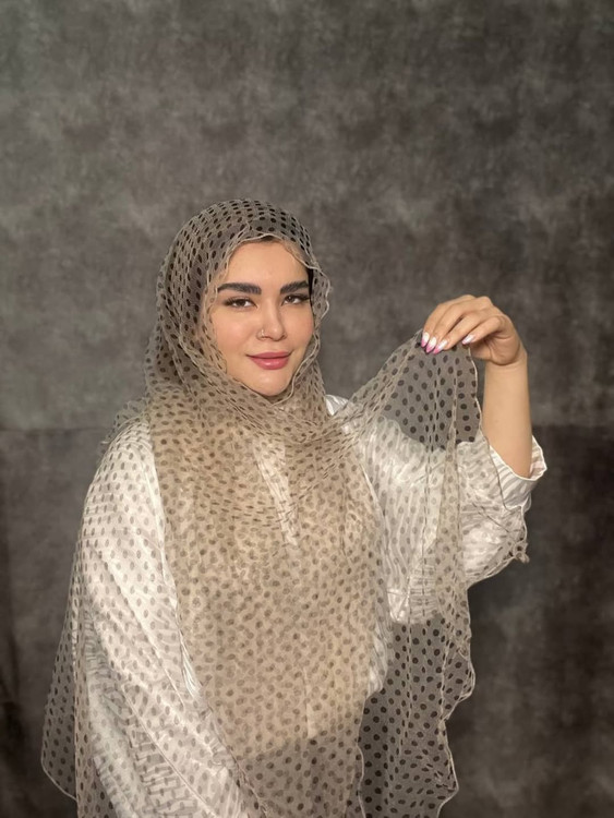 شال شیفون توپی لبه موجی
